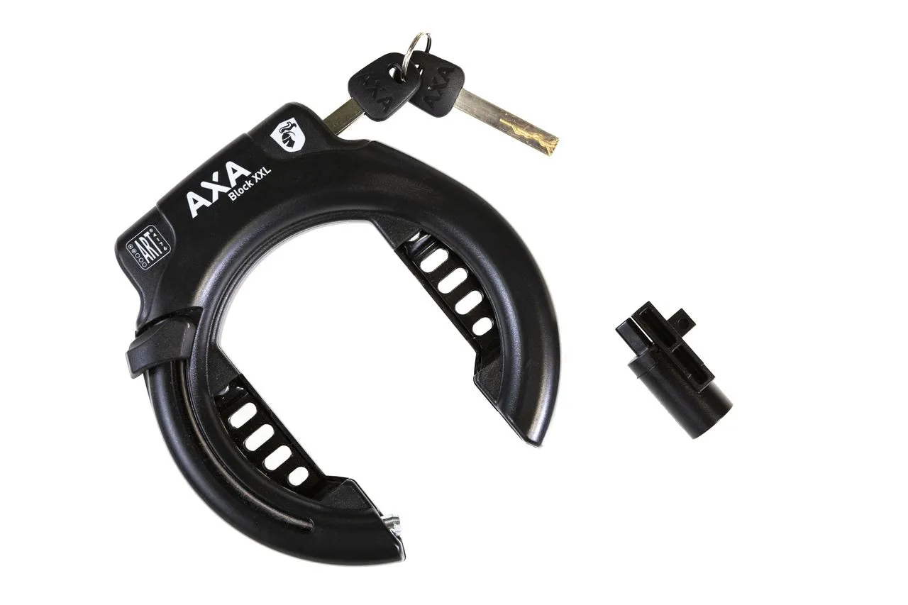 AXA Solid Plus Down tube Ringslot met daarbij een los accuslot, zodat de accu ook weer met dezelfde sleutel is uit te nemen. Geschikt voor de Batavus Razer met Yamaha middenmotor en een framebuis accu.
