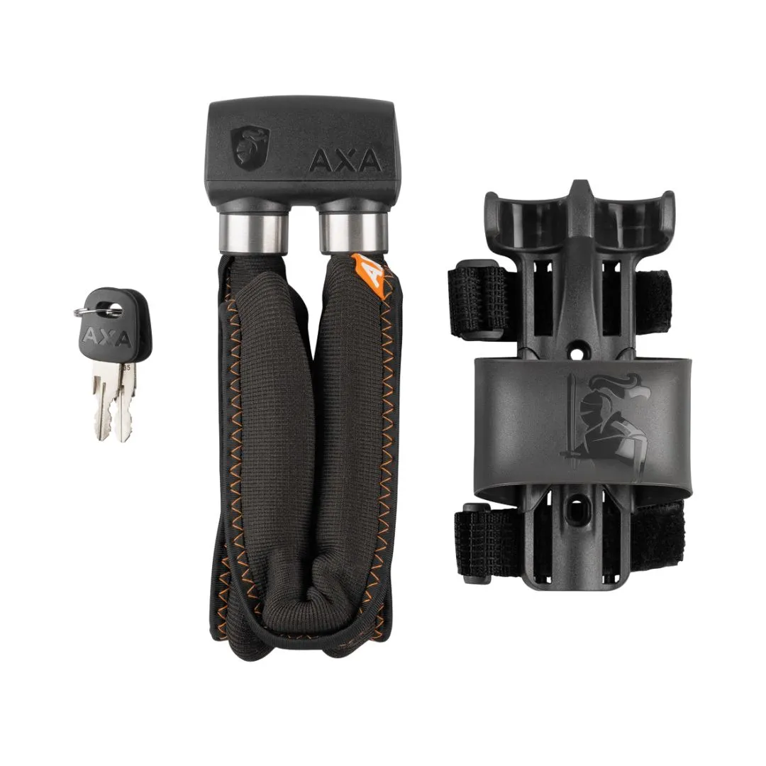 Dit gehard stalen vouwslot is makkelijk in gebruik doordat hij is voorzien van meerdere scharnierpunten. De schakels hebben een diameter van 6 mm en in combinatie met de lengte van 95 cm kunt u het slot daardoor eenvoudig en veilig aan een vast object vastleggen. De cilinder wordt met een afdekkap beschermd tegen vocht en vuil, dit komt ook de levensverwachting van uw slot ten goede. Een reservesleutel is eenvoudig na te bestellen via de AXA online sleutelservice. Het vouwslot is verkrijgbaar met een neopreen sleeve in de kleur donker grijs en is comfortabel op te bergen in de bijgeleverde houder die u aan uw frame kunt bevestigen.