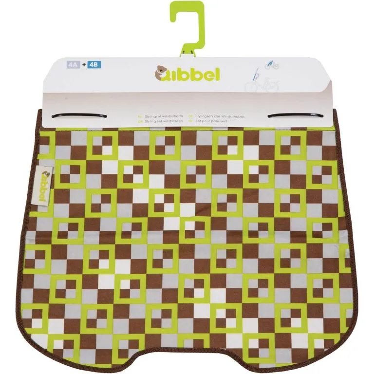 Met de stylingset voor het Qibbel windscherm, zoals deze Checked Green met combi van vierkantjes in bruin en groen, krijgt het scherm een eigen look. Deze styling past 100% bij de gelijknamige stylingset voor armsteuntjes, voetriempjes en bekleding.
