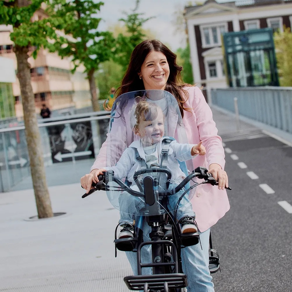 Let bij het kiezen van een voorzitje op de leeftijd, het gewicht en de lengte van je kind. De meeste voorzitjes zijn geschikt voor kinderen tot ongeveer 15 kg. Kies bij voorkeur een model met verstelbare gordel, voetensteunen en zachte bekleding voor extra comfort. Overweeg ook om een windscherm te gebruiken — zo zit je kind beschut tegen wind, regen en insecten tijdens de rit.