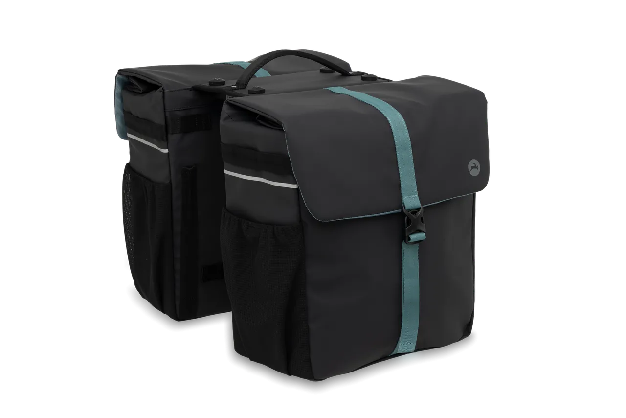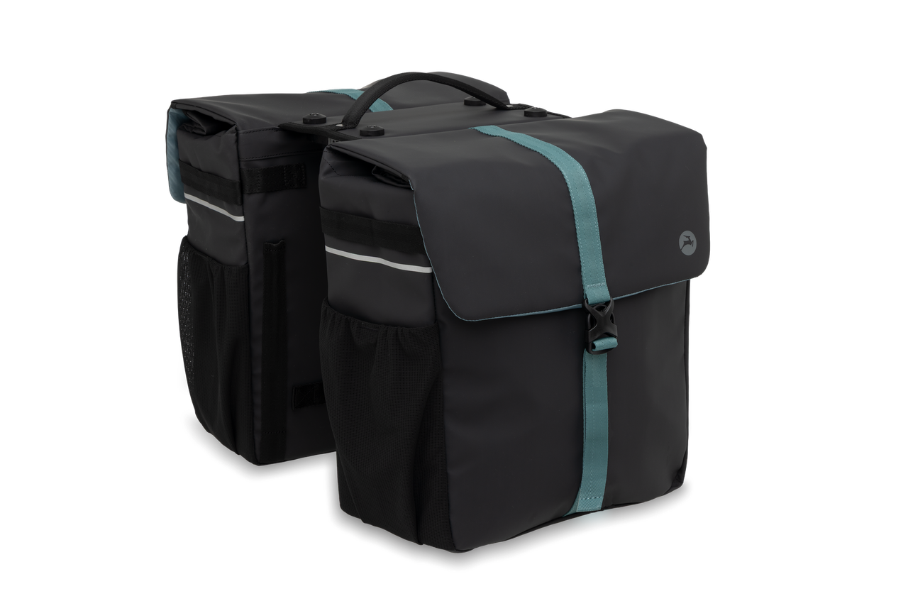 De dubbele fietstas is ideaal voor een ontspannen rit door de natuur óf naar de supermarkt. Het robuuste en duurzaam geproduceerde materiaal zorgt niet alleen voor een stoere look, maar is ook nog eens waterafstotend. Zo zijn jouw waardevolle spullen uitstekend beschermd. Met een inhoud van 35 liter biedt de dubbele tas meer dan genoeg ruimte voor al je boodschappen en extra bagage. Naast de ruime hoofdvakken is de tas aan één kant voorzien van twee kleine vakken met ritssluiting en een elastisch vak aan de zijkant: perfect voor bijvoorbeeld een regenbroek. Door de reflectiestrepen aan zij- en achterkant ben je daarnaast extra goed zichtbaar tijdens het fietsen. Je bevestigt de tassen gemakkelijk aan de drager door de MIK-interface.