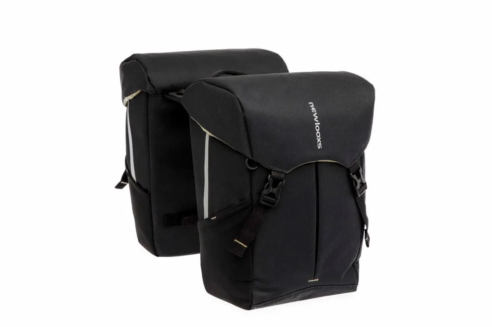 De New Looxs Sports Double fietstas is een sportieve, dubbele fietstas van waterafstotend polyester, geschikt voor alle fietsen, inclusief e-bikes. De tas biedt voldoende opbergruimte met ruime hoofdvakken, een voorvak en elastische zijvakken. Dankzij de kunststof platen en foam blijft de tas stevig en vormvast. Voor extra veiligheid is de tas voorzien van reflectie. Met de geïntegreerde MIK-adapter klik je de tas eenvoudig vast op MIK-bagagedragers, of gebruik een MIK Carrierplaat als je fiets geen MIK-systeem heeft. De meegeleverde regenhoes beschermt spullen tegen regen, waardoor de inhoud van de tas altijd droog blijft.