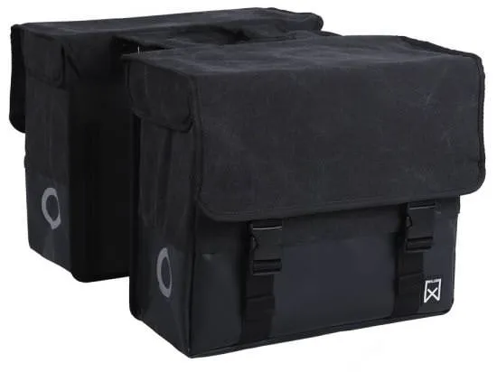 Deze stoere, supersterke Willex is mooi in zijn eenvoud. De twee ruime compartimenten van de tas hebben samen een inhoud van 48 liter. Gemaakt van waterdicht katoenen canvas, met reflectie en regenflappen. Het stevige canvas maakt deze dubbele fietstas elegant en sterk tegelijk. Bovendien is dit katoenen canvas waterafstotend. Om inregenen te voorkomen is de klep van de tas voorzien van regenflappen. Ook de binnenkant is bestand tegen vocht, dankzij de voering van waterdichte stof. De Dubbele Canvas Plus - zeer geschikt voor e-bikes en te verkrijgen in meerdere kleuren en inhoudsmaten, zie ook de gehele Willex-collectie fietstassen - is een fraai voorbeeld van de producten van dit Belgische merk, die zowel kwalitatief als esthetisch tot de verbeelding spreken. U bevestigt deze dubbele fietstas eenvoudig aan uw bagagedrager met de twee bevestigingsriemen. Gereedschap is dus niet nodig! De tas heeft harde bodemplaten en zijplaten, zodat hij zijn vorm behoudt. Daarnaast zorgt de bodem van bisonyl ervoor dat de tas langer mooi blijft en dat u de tas makkelijker kunt vullen. Extra grote gespen en reflectievlakken aan de voor- en achterzijde maken deze tas helemaal af. Optioneel kunt u voor de tas nog de los verkrijgbare extra wielbeschermers bestellen.