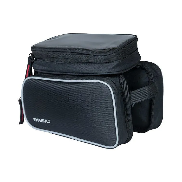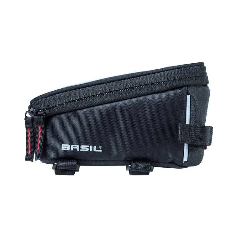 De Basil Sport Design is een dubbele Top Tube-frametas voor dames- en herenfietsen. De sportieve tas met een inhoud van 1,5 liter is er in de kleur zwart.