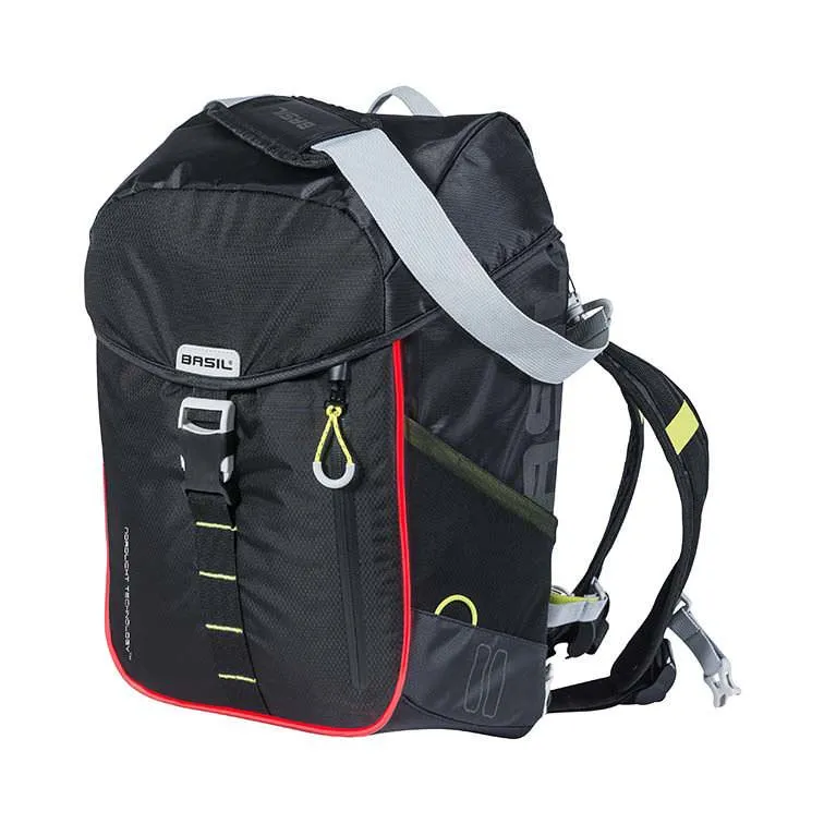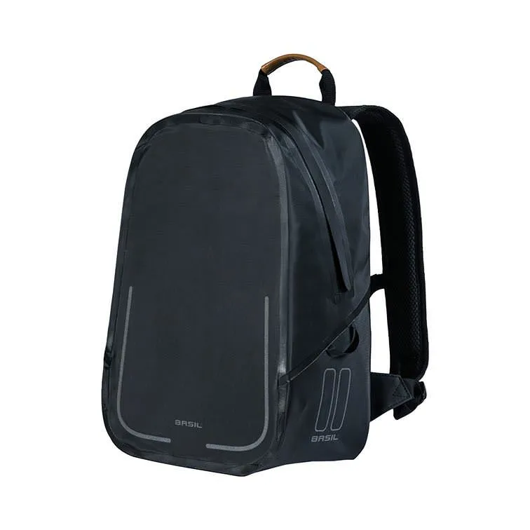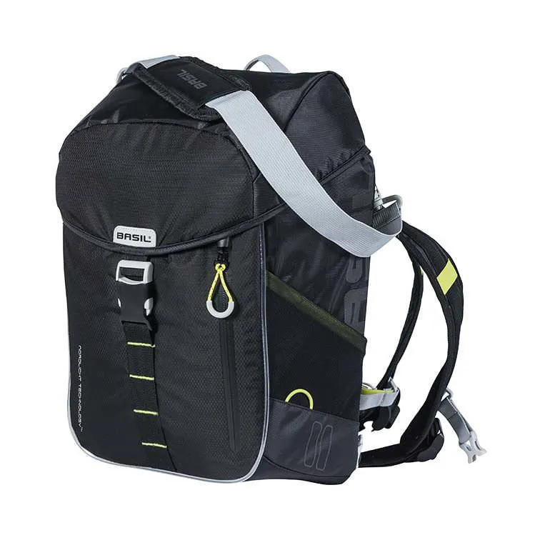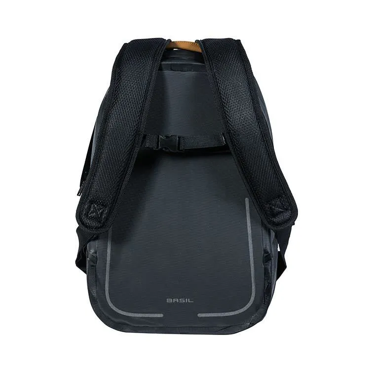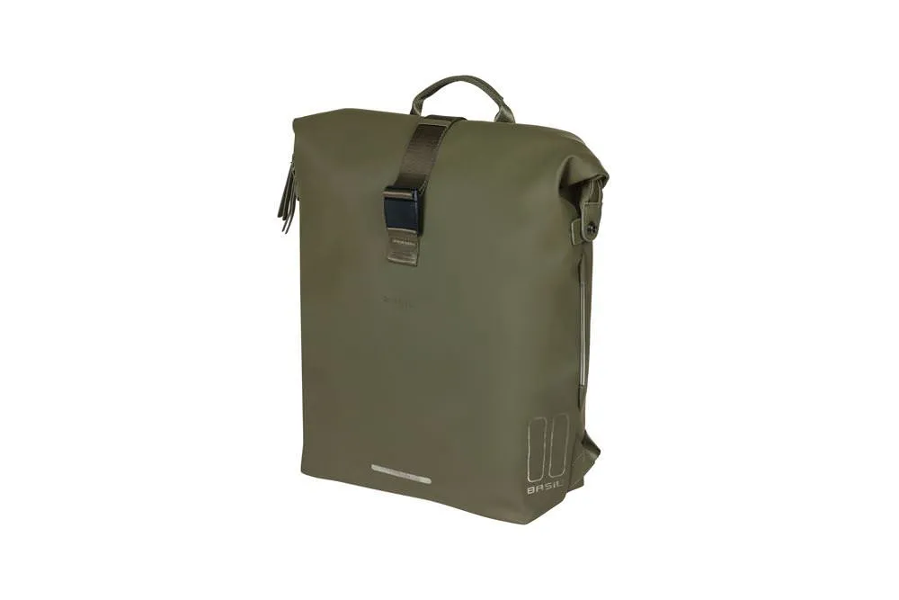 De Basil Urban Dry Backpack is een handige rugtas en fietstas in één, ideaal voor woon-werkverkeer. Deze enkele tas met 18 liter inhoud is gemakkelijk te bevestigen aan elke bagagedrager, inclusief elektrische fietsen, dankzij het Hook-On systeem. De tas heeft een waterdichte constructie van sterk tarpaulin en een afsluitbaar binnenvak. Reflectie op alle zijden zorgt voor betere zichtbaarheid in het donker, en lusjes bieden de mogelijkheid om LED-verlichting toe te voegen. Perfect voor diverse activiteiten, waaronder sporten, winkelen, of schoolspullen vervoeren.