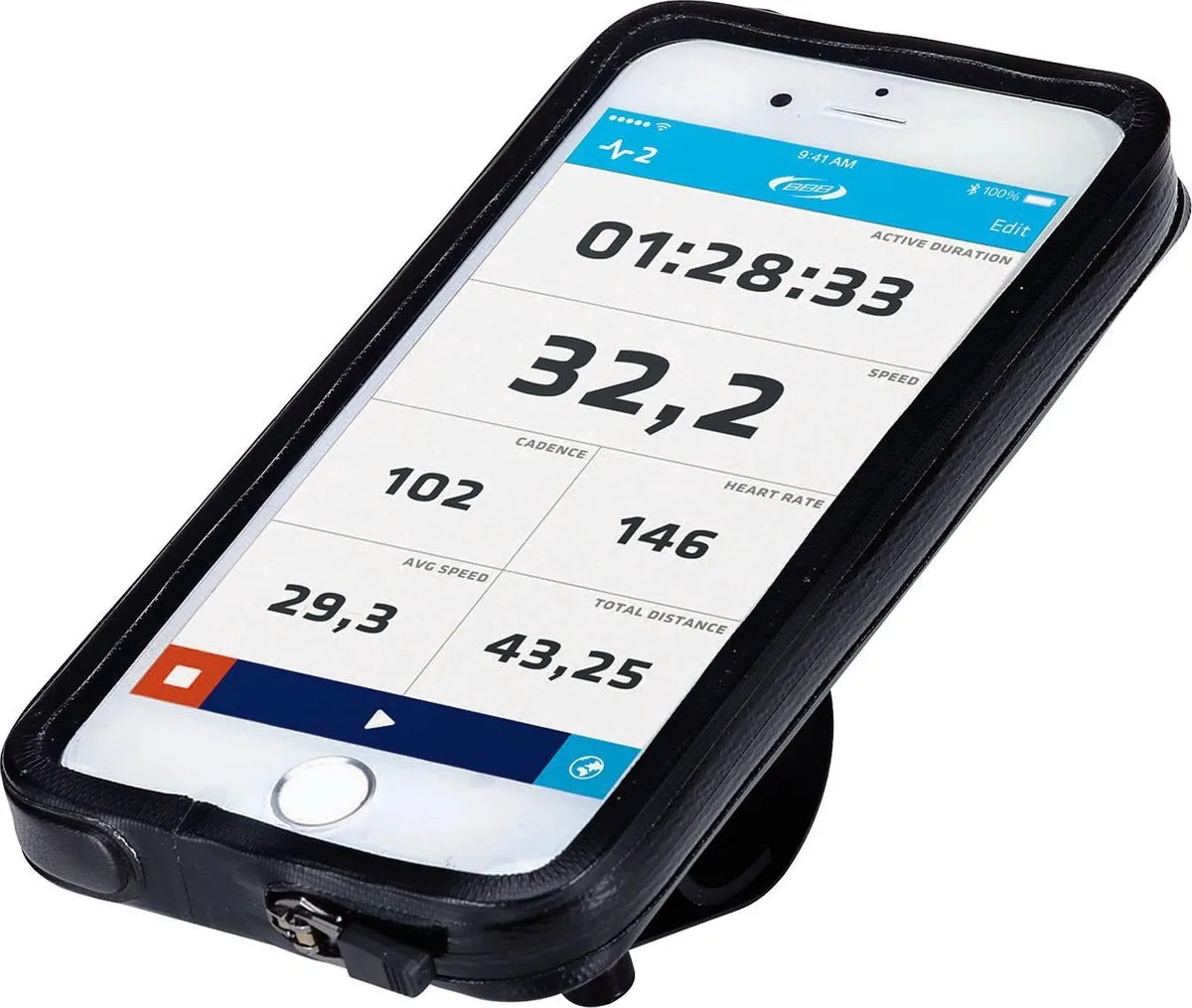 Met de BBB Cycling BSM-11M Guardian monteer je je smartphone op het stuur, de stuurpen of de topcap van je fiets. Dankzij de touch screen compatibiliteit kun je optimaal gebruik van de functionaliteiten van je smartphone gebruiken blijven maken. De waterbestendigheid, schokabsorptie en en stijfheid van de houder zorgen voor stabiliteit en bescherming van je telefoon. Met de Guardian M (max. telefoonmaat, breedte x lengte (mm): 70 x 140) heb je je smartphone tijdens je fietsrit altijd binnen handbereik.