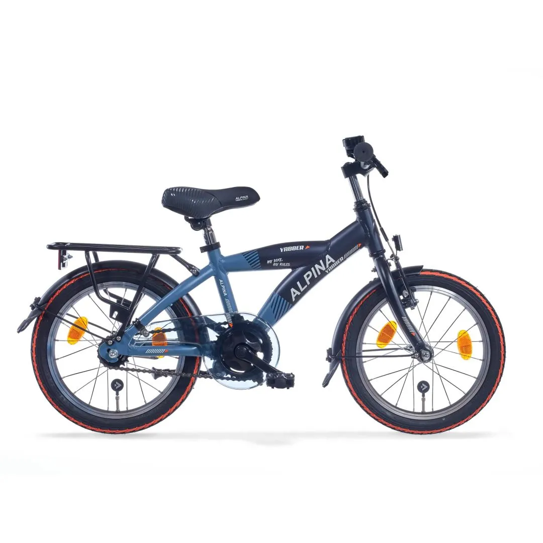 De Alpina Yabber kan tegen een stootje! De krachtige en betrouwbare terugtraprem van de Alpina Yabber zorgt er -samen met de handrem aan de voorzijde- voor dat je sportieve jongen fijn kan racen, maar ook snel en veilig kan stoppen. De fiets heeft een extra sportieve look door de kunststof spatborden en heel stoer: een verende voorvork! Fiets parkeren? Met het handige ringslot staat de fiets in een handomdraai op slot. Je zoon kan zelf zijn batterijverlichting aandoen en is zo ook in het donker goed zichtbaar. Op de handige achterdrager kan hij ook nog eens gemakkelijk zijn schooltas of sporttas meenemen. Wat een performance!