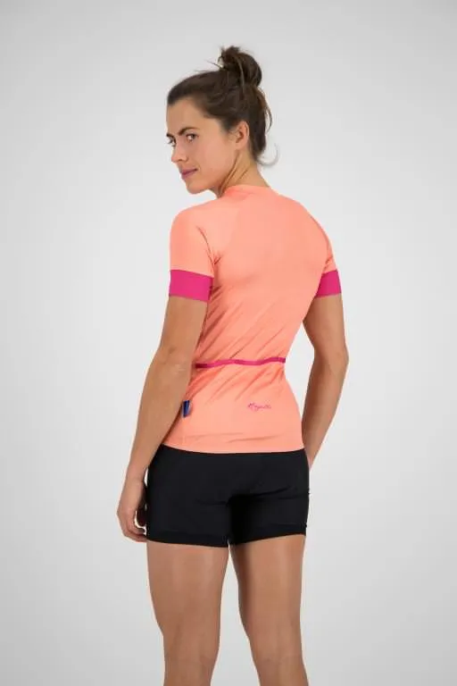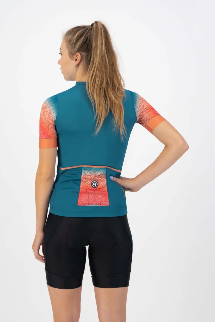Een goed fietsshirt is onmisbaar voor elke fietsliefhebster. Dankzij de vrouwelijke pasvorm sluit het shirt mooi aan op het lichaam zonder te knellen, terwijl de elastische stoffen zorgen voor optimale bewegingsvrijheid. De sneldrogende materialen voorkomen oververhitting en houden je droog, zelfs tijdens intensieve ritten. Praktische details zoals achterzakken en een doorlopende rits maken het fietsshirt niet alleen functioneel, maar ook comfortabel voor dagelijks gebruik.