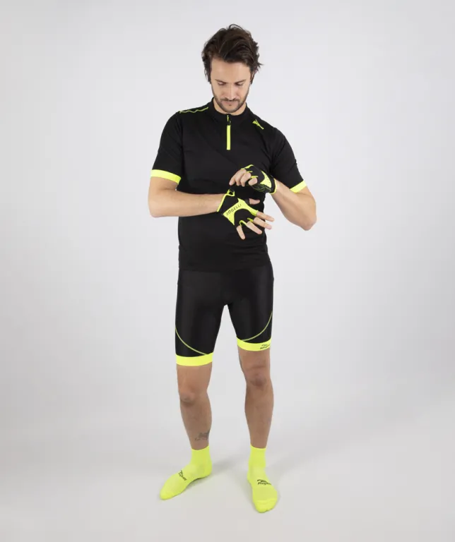 Onze heren fietsshirts zijn ontworpen met oog voor detail en functionaliteit. De ergonomische snit zorgt voor een natuurlijke houding op de fiets, terwijl de siliconen gripper aan de onderzijde voorkomt dat het shirt omhoog kruipt. Reflecterende accenten verhogen je zichtbaarheid in het verkeer, en de doorlopende ritssluiting biedt extra ventilatie wanneer dat nodig is. Alles is gericht op één doel: jouw rijcomfort en prestaties verbeteren.