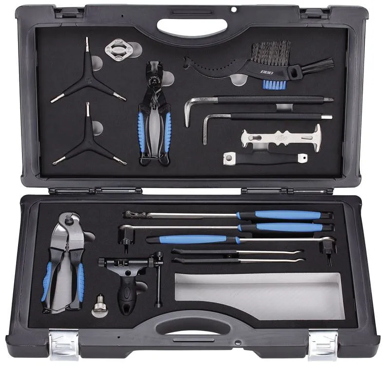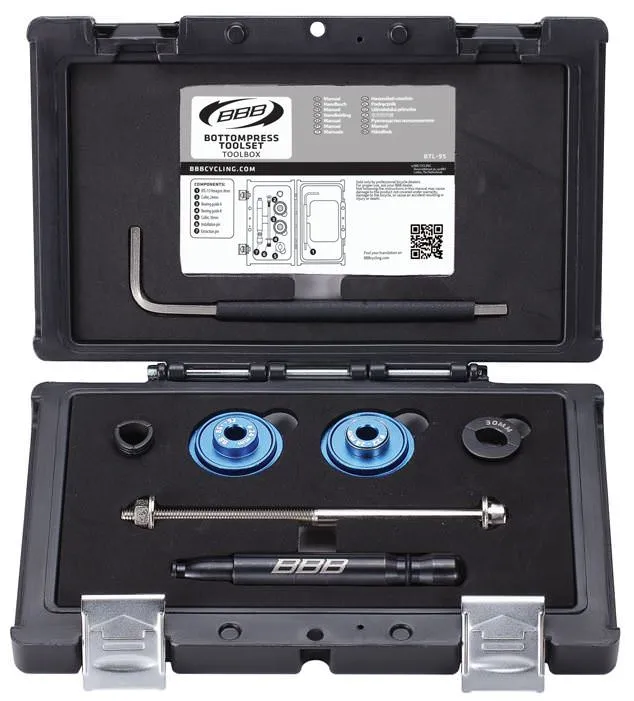 Extra stevige gereedschap koffer met alle benodigde gereedschappen voor het verwijderen en installeren van je press-fit trapaslagers.