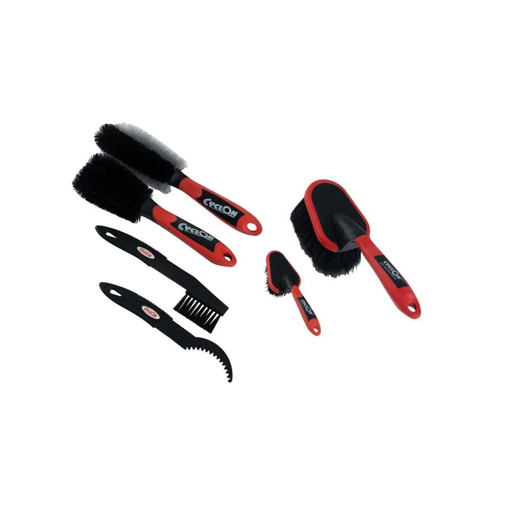 De Cyclon Borstelset is een superhandige set met 6 borstels om jouw gehele racefiets, mountainbike of gravelbike mee schoon te maken. De borstels in deze set gaan lang mee en zijn ter bescherming van de onderdelen van je fiets voorzien van rubberen randen. Daarnaast liggen ze door hun rubberen handvaten lekker in de hand.
